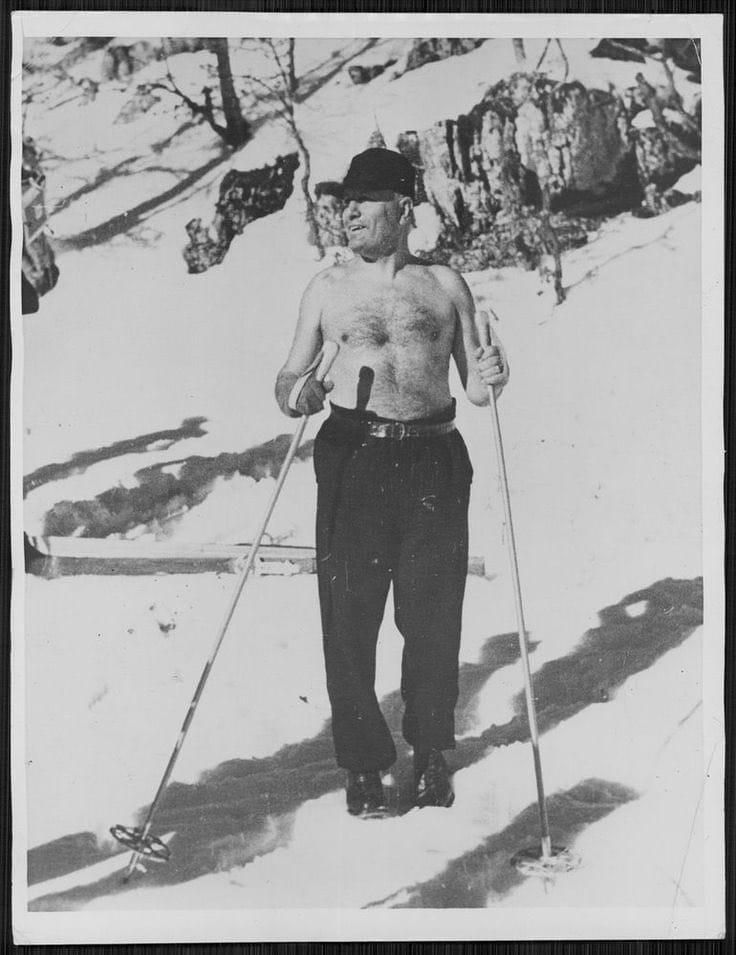 墨索里尼赤膊滑雪