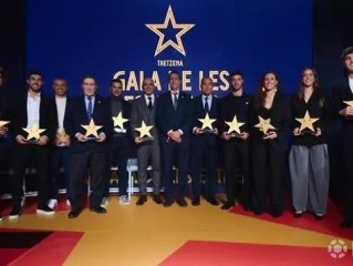 暴风体育最新报道,第13届“加拉-德莱斯-埃斯特雷列斯”颁奖典礼在巴塞罗那埃斯特雷利亚-达姆老工厂举行,活动隶属于第33届加泰罗尼亚足协年度颁奖。整场典礼回顾并表彰了上赛季以及近几个月来加泰罗尼亚足球所取得的成绩。