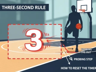 离开后又立即返回:如果一名球员双脚完全离开三秒区后,又立刻返回,那么3秒计时会重新开始。但如果他只是“虚晃一枪”,一只脚在外划拉一下,计时不会重置。