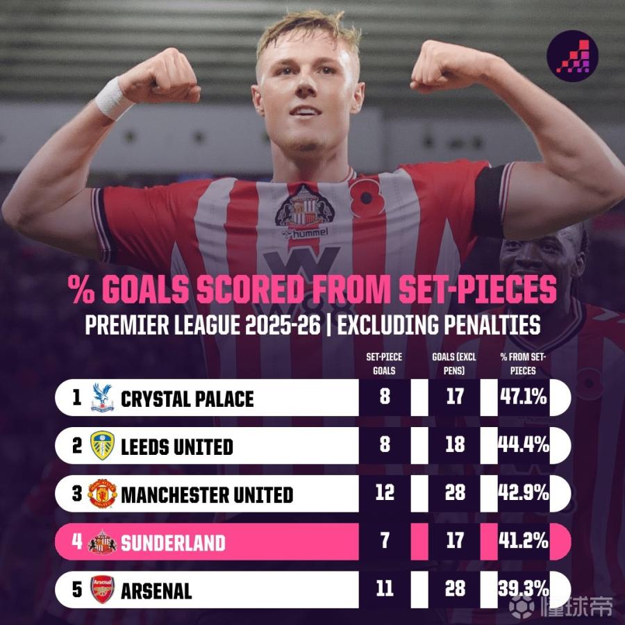 事实上,直接、强调身体对抗的足球风格本就不容易被量化和精准评估,但桑德兰本赛季的许多进球,都呈现出高度相似的模式。