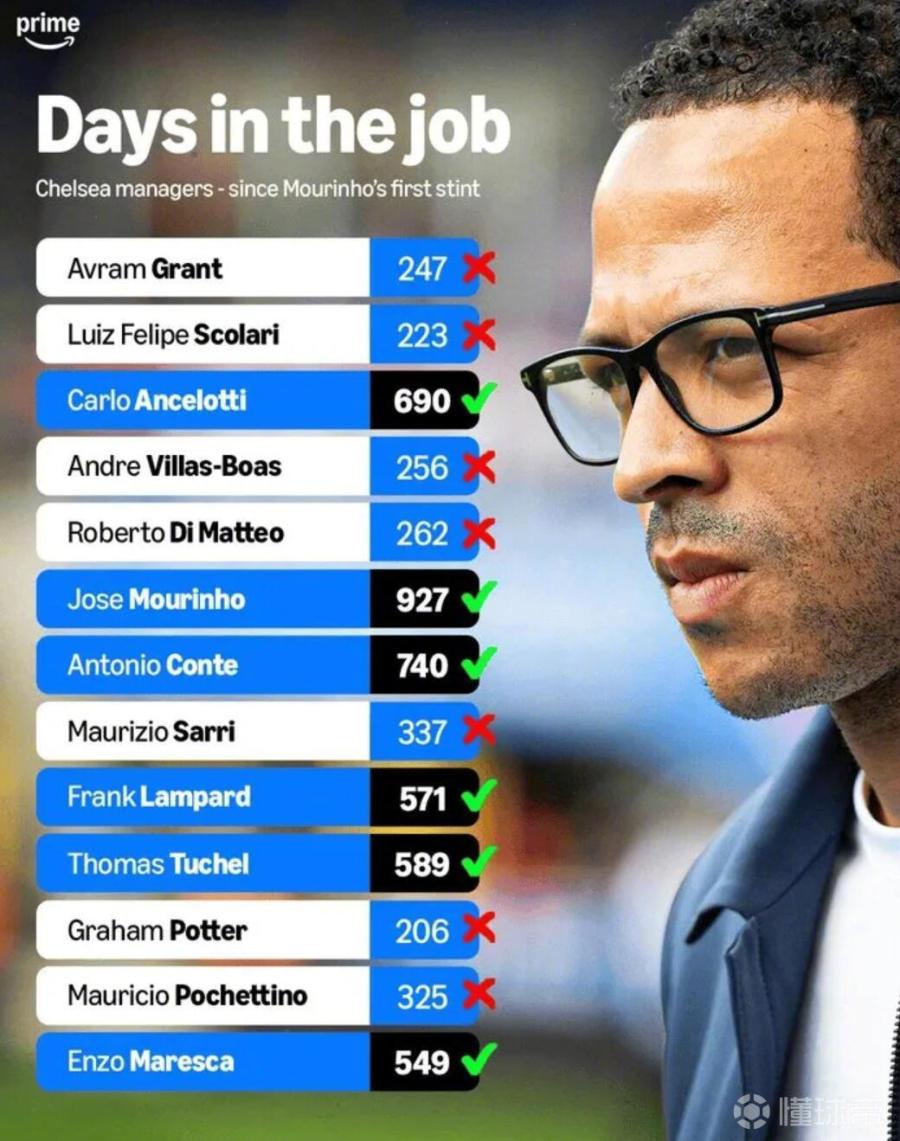 话说回来,切尔西的主教练早就是一个高危职业。阿布拉莫维奇时代19年换了15任教练,一进宫的穆里尼奥之后,竟没有一任教头能在帅位上待足1000天!但同样是频繁换帅,两代管理层的决策逻辑却迥然不同。