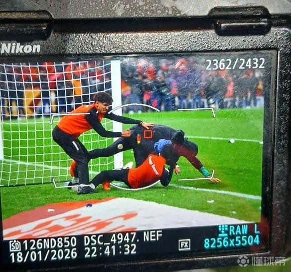 难道是球童在守卫门迪的毛巾?当然不是,黑衣男子其实是塞内加尔替补门将迪乌夫,然而此时他却不在替补席和队友们待在一起,而是独自站在球门后,手中拿着门迪的毛巾,在门迪需要的时候递给他。仔细看还会发现,他身边站着的是被换下场的摩洛哥11号萨伊瓦里,他被替换下场后也没有坐在替补席,而是来到塞内加尔球门后,看上去仿佛是在盯防迪乌夫一样。拍摄视频的摩洛哥球迷对迪乌夫很不满,可以看到他在给门迪递毛巾时人已经走到了比赛场地上。