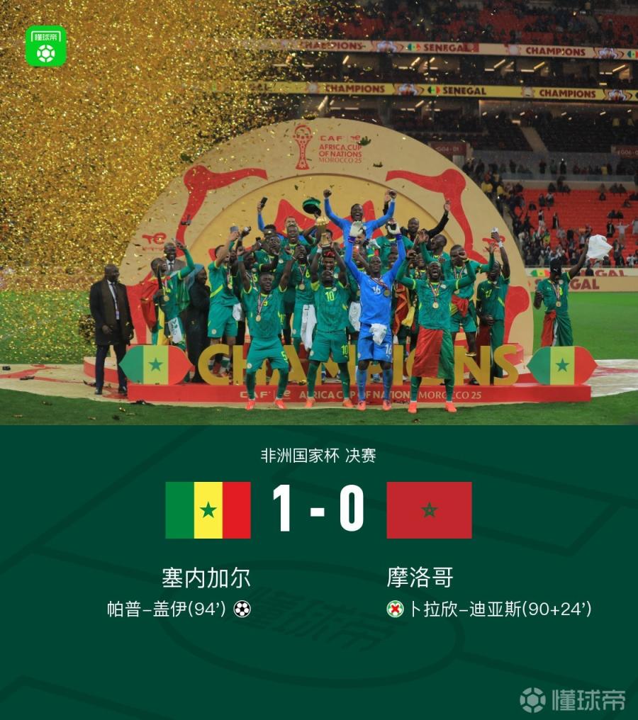 塞内加尔1-0摩洛哥夺非洲杯冠军!卜拉欣终场前失点,帕普-盖伊加时制胜