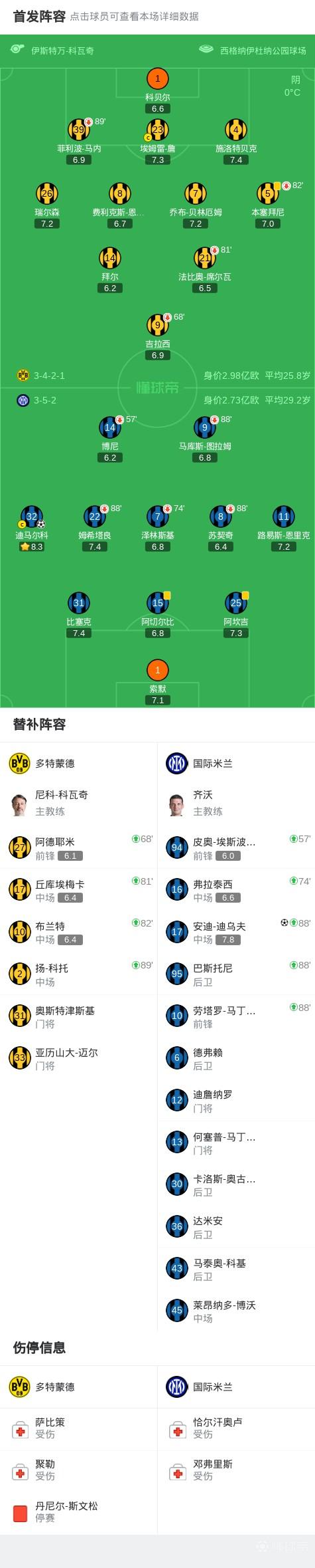 国米2-0多特,两队均进入附加赛,迪马尔科任意球世界波
